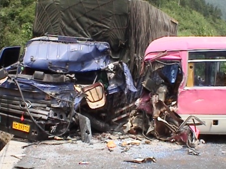 本港訊 (張金才 吳如雄) 23日中午1時許,320國道黔東南州臺江縣臺盤鄉路段發生一起車禍,一輛中巴車與一輛大貨車猛烈對撞,導致兩車上19名人員1人死亡、18人輕重傷。事發后,臺江縣交警、消防部門以及凱里市消防、醫院急救人員先后趕往現場緊急救援。
