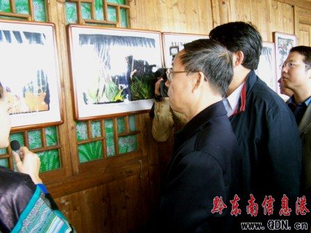 圖:林樹森同志觀看岜沙樹葬文化圖片展