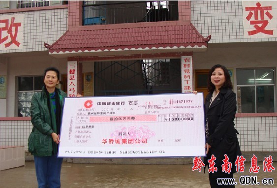 據黔東南州政府網消息 2010年3月30日,深圳華僑城集團公司行政管理部副總監宋臻女士一行給三穗人民送來了溫暖和愛心。當了解到三穗縣旱情嚴重,很多居民飲水困難時,該公司千里迢迢蒞臨三穗縣檢查工作的同時,又為三穗縣捐贈15萬元,用于幫助旱情嚴重的老百姓度過難關。
