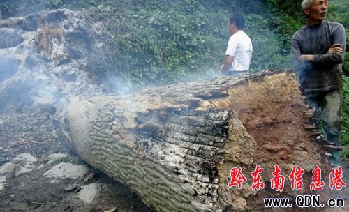 這株被雷擊燃燒的古樹(shù)被當(dāng)?shù)卮迕穹Q之為“保寨樹(shù)”。據(jù)村民們介紹,該樹(shù)估計(jì)已幾百年樹(shù)齡,在10多年前已干枯無(wú)葉,曾2次被雷擊過(guò),第一次擊斷幾個(gè)枝丫,第二次劈開(kāi)一條5寸多深的樹(shù)干。