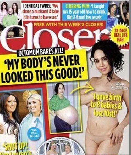 據(jù)悉,曾有報道稱,通過獨家接受某媒體的采訪,蘇爾曼獲得了不菲的報酬,而她竟將這些錢用于支付在加州拉哈布拉市購置的價值40萬英鎊的新家中,引發(fā)不小爭議。面對房貸,蘇爾曼無計可施,還曾為英國八卦雜志《Closer》拍攝雙手遮胸,全身只穿三角褲的半裸照,然后講述她生完8胞胎減重的經(jīng)歷,以此來掙錢以緩解生活壓力。
