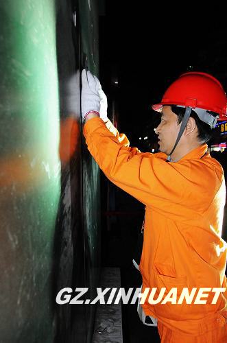 在貴州省黔東南苗族侗族自治州凱里市,潘武忠在檢查變電設(shè)備,保證供電正常。