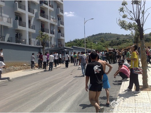 記者采訪了昭通市民羅紹江,她說,自己當(dāng)時(shí)正在位于昭通市昭陽區(qū)的辦公室三樓上班,地震發(fā)生時(shí)搖晃感非常明顯,水桶、桌子都晃起來了,自己感到頭暈。一些同事迅速?zèng)_下樓去,不一會(huì)兒樓下就聚集了一大堆人。