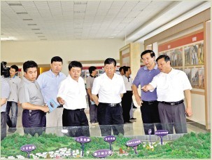 圖為王富玉在洛貫經濟開發(fā)區(qū)考察建設規(guī)劃沙盤
