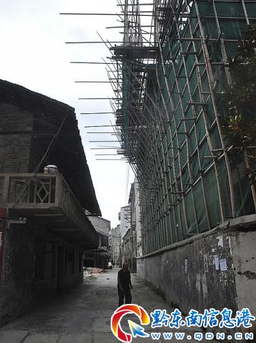 今年6月左右,位于臺江新民巷的臺江縣苗疆明都大廈開建,但因其與當地居民楊再勵的住宅(以下簡稱“楊宅”)僅幾米之隔而引發了采光權糾紛。近日,臺江縣住房與城鄉建設局(以下簡稱“住建局”)介入調查此事,認定苗疆明都大廈項目的開發手續不齊全而下達了停工通知書,并向楊再勵道歉。