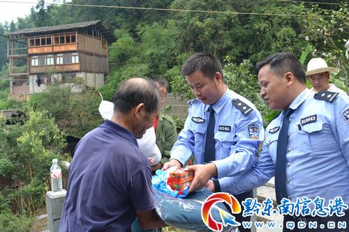 穿過村里的竹林小路,“馬背派出所”民警們終于來到了貧困戶姜先壽的家里,姜先壽老人看到“馬背派出所”民警扛著大米、棉被,提著棉衣和水果、月餅前來看望,便主動為汗流浹背的民警們端來山泉涼水,提著凳子給民警們歇氣。通過與姜先壽老人交談得知姜先壽老人家屬于該村貧困戶,子女全部外出打工,孫子李健、李康系留守兒童,老人日常除了照顧孫子日常生活之外,已無力做重活,民警們獲悉之后,經常前往慰問。這時,民警們把背篼上面的文件袋、資料冊等小心放好一旁凳子上,讓記者感到驚訝的是背篼底層還放置著洗衣粉和透明皂,楊清高所長小心翼翼地將洗衣粉和透明皂取出交到姜先壽老人手中,老人頓時熱淚盈眶,感動地說不出話。楊清高所長:“派出所通過安排,今天專程把“流動警務室”馱到你們村開展工作,再過兩個星期就要到中秋節了,天氣也逐漸涼了,所以帶了一些慰問物資前來慰問你老人家和你的兩個孫子,也提前祝愿你們節日愉快。”姜先壽老人:“感謝你們民警對我這么關心,上次你幫我馱來的鹽巴我到現在都還沒有吃完,今天你們又來看望我了,你們就像我的親人一樣。”民警們把慰問物資放好之后,正要與老人道別,姜先壽老人連忙拉起民警們的手,用感激的話語說:“現在都中午12點了,你們大家留下來吃飯了再走吧!”“我們還要去其他戶慰問,你不用麻煩了,在家里好好休息,照顧好兩個孫子。”楊清高所長與姜先壽老人握著手拜別。