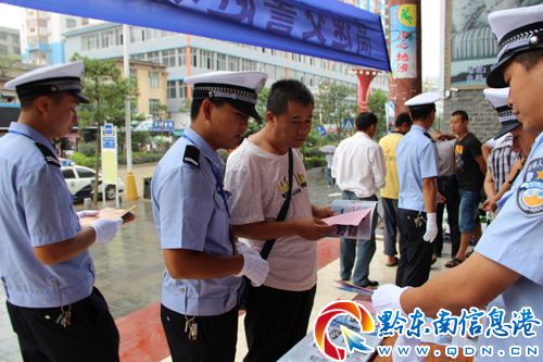 交警在黎平縣城休閑廣場為行人宣講和發放高速公路安全防范知識的情形。