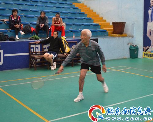 在筆者采訪完準備返回時看到場上一個白發蒼蒼的老者也在進行激烈的比賽。隨后記者在場下了解到這位老者姓曹,“我已經打了十幾年的羽毛球了,身體很好,很少感冒,也幾乎不看病和吃藥。”曹大爺這樣說道。別看曹大爺已經81歲高齡了,但是打起球身手依然不輸我們年輕人。(劉承宇)