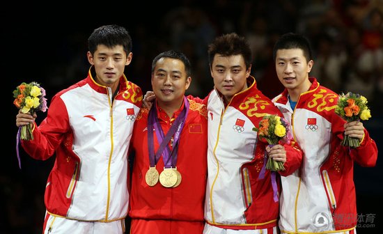 北京時(shí)間8月8日晚,2012年倫敦奧運(yùn)會(huì)乒乓球比賽進(jìn)入最后一個(gè)比賽日。在備受矚目的男團(tuán)決賽中,中國(guó)隊(duì)3-0橫掃韓國(guó)隊(duì)成功衛(wèi)冕。繼北京奧運(yùn)會(huì)后,中國(guó)乒乓球隊(duì)再次包攬全部四枚金牌。