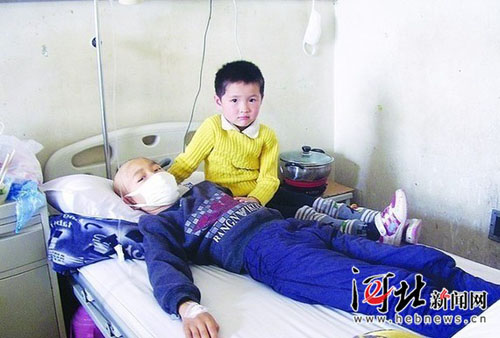 “媽媽,媽媽,小孩有骨髓嗎?”在山東省德州市人民醫(yī)院的病房走廊里,一個5歲的小女孩很“嚴肅”地問偷偷抹眼淚的媽媽。女孩叫孫少涵,她剛才在一旁聽了大人的對話,“如果少康的骨髓配不上,孩子就有死無活了”,才這樣著急地問媽媽。所說的少康就是女孩的哥哥,一個年僅12歲的少年。