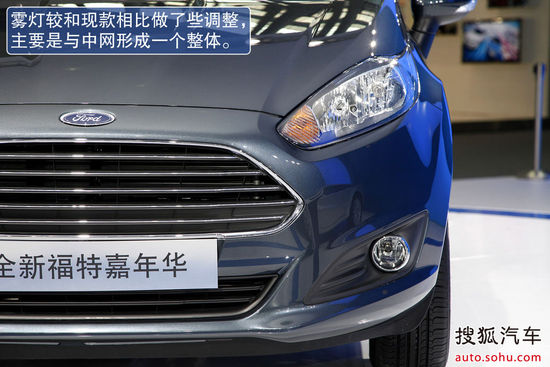 外觀方面:國產全新嘉年華采用全新前臉設計,有兩種高低不同配置的前大燈設計,低配版延續現有的反射式遠近光設計,高配版本的近光燈組升級為投射式的透鏡大燈,燈組下沿長條形的LED日間行車燈配置。依然配置195/50 R16規格的輪胎,但新的15輻條的鋁合金輪轂頗具中高級車型的風。