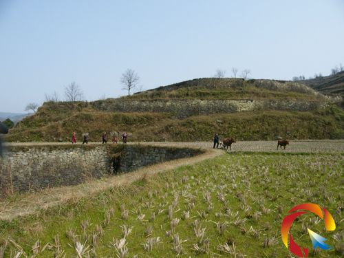 自庚午嘉慶十五年(公元1810年)起,36歲的潘老淺就帶著妻子巫比在橋木屯的兩處山梁上長年累月挖山造田。在過去的年代里,沒有雷管、炸藥,沒有鋼釬、鐵鉆,開山造田全靠雙手和鋤頭以及泥巴轎挖刨和抬運,人工和勞力消耗之巨,可想而知。潘老淺兩口子連續挖了30多年,才將兩座山梁挖平。隨著兒子潘老薄長大成人并娶妻生子后,潘老薄又與妻子巫蛙每天從馬鞍山高處抬來石塊于山彎處向兩邊外側鑲砌延伸,他們一邊運石砌坎,一邊又將父母挖平的山土填入山彎內。通過不斷的修造,待潘老薄的兒子潘老獎長到十六歲并能夠幫助父母上山造田時,這塊歷經三代人的艱辛努力才初步成型。當田基打夯結實后,大量的土石方已經填方殆盡。沒有培土,全家人又從附近的空地抬運土壤傾入田中,再用竹篩選細,才獲得種植沃土。潘氏三代人為了開造大彎田可畏歷經了千辛萬苦。按理說,這塊耗費了大量勞動力才開造出來的大彎田,應該使潘老薄全家祖孫以此為榮,然而他們祖孫三代人卻高興不起來。因為在歷經70多年的開山造田中,從潘老淺那輩開始,全家人一年三百六十五天的勞力都投入在這塊大田上,放棄了田地的耕種作業,長年向本寨大戶潘子清家借糧造田和生活。到潘老獎這代后,由于所欠潘子清家的糧食數額巨大,無力還糧,最終只得忍痛把這丘大彎田抵擋給潘子清戶。新中國成立后,地方土改將這丘大田分配給潘老考戶;農村實行聯產承包責任制后,集體以農戶人口承包份額,才把大彎田承包給吳征國戶。