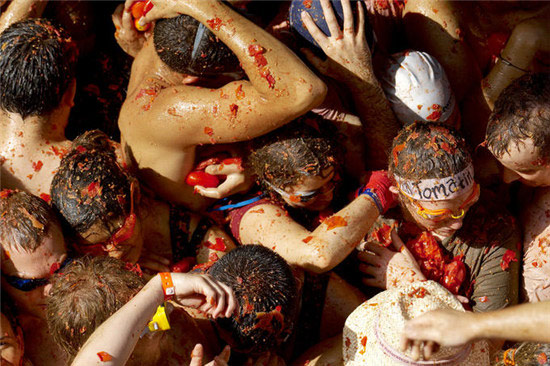 世界最大的食物大戰之一便是西班牙步奧尼爾為慶祝番茄豐收而舉行的番茄大戰。當地居民和游客都會趕到瓦倫西亞小鎮,用熟透了的番茄相互砸來砸去。這個傳統從1952年就開始了,因為太臟了,當地的商家只好用塑料篷布蓋住店面以防萬一。