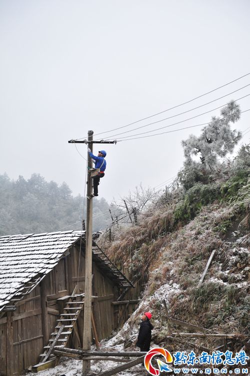 接到消息后,下江供電所副所長賴志揚二話不說,帶上兩個搶修員冒著受天氣凝凍滑溜溜的公路危險,驅車30公里近2小時的路程匆忙趕到東朗村。通過一番勘測后,幾人決定從潘明光最近的一基四平線電桿取三相電。可連續受凝凍了幾天的電桿還是和公路一樣,滑溜溜的,嘗試了幾次爬桿都上不去。大家只好想出用稻草燒電桿先融冰,然后再用稻草繞住腳扣一步一步往上爬,花了兩個多小時的時間,總算把三相電源給接好了。看著一頭頭小香豬享受暖光熟睡的幸福樣,犯愁了幾天的潘明光這才撥開云霧見晴天。