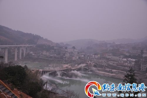 1月18日16時(shí)55分,隨著一聲震天巨響,天柱縣遠(yuǎn)口清水江跨江老橋爆破成功。陪伴遠(yuǎn)口鎮(zhèn)20年的跨江老橋已完成歷史使命,正式與當(dāng)?shù)鼐用窀鎰e。