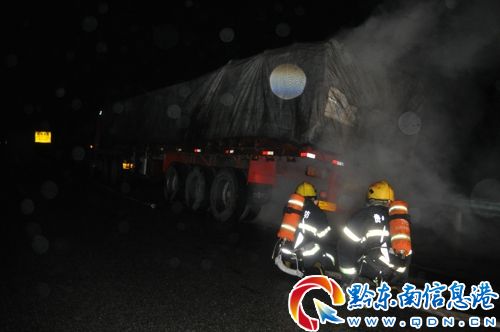 2月21日5時05分,臺江縣消防大隊接到報警稱,一輛滿載煤炭的大貨車在滬昆高速臺江至凱里方向石板橋路段起火,情況萬分緊急,請求消防官兵前往救援。臺江縣消防中隊迅速出動兩輛水罐消防車,一輛搶險救援車,一輛指揮車,官兵13人趕往現場處置。