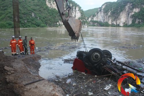 07時(shí)49分,消防官兵到達(dá)事發(fā)現(xiàn)場,經(jīng)詢問了解得知:由于昨晚凱里地區(qū)突降暴雨致使當(dāng)?shù)睾哟菜徊粩嗌仙纬珊樗疀_擊河邊公路,該貨車行駛途中突遇公路垮塌,在翻入河中的瞬間,駕駛員跳車落入河中,使勁掙扎游上了岸,而副駕駛位置上的一名人員來不及逃生,連同貨車被洪水吞沒,不幸遇難。此時(shí),根本看不到車身,而且水質(zhì)非常渾濁,救援工作十分困難。