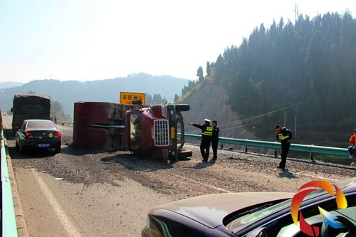 12月2日10時許,滬昆高速1667km+800m下行線發(fā)生交通事故,一輛貨車側翻,車上的瀝青灑滿路面,造成1人受傷和交通中斷。