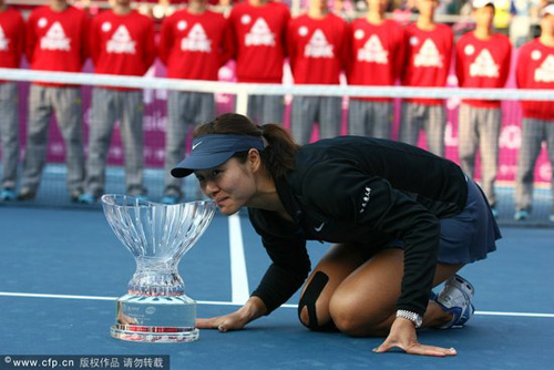 北京時間1月5日消息,WTA國際巡回賽深圳賽女單決賽,頭號種子中國金花李娜雖然發出了10次雙誤,決勝盤5-2領先丟掉了一個發球勝賽局,最終還是以6-3/1-6/7-5擊敗5號種子捷克選手扎科帕洛娃,新賽季首站比賽就奪得冠軍,這也是職業生涯的第7個單打冠軍。