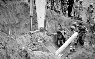 “孫子不知道怎么逃出來的,可是我的老伴,到現(xiàn)在沒找到尸首。”昨天早上,褚懷德蹲在挖掘機的附近緊鎖眉頭。