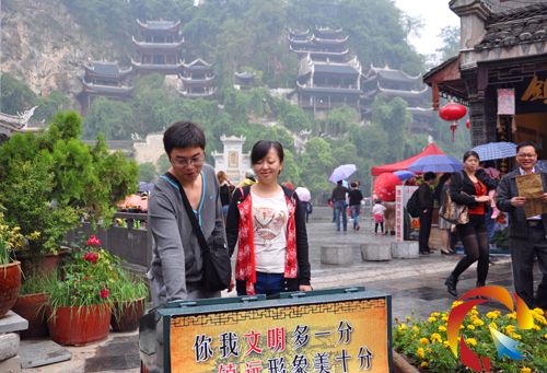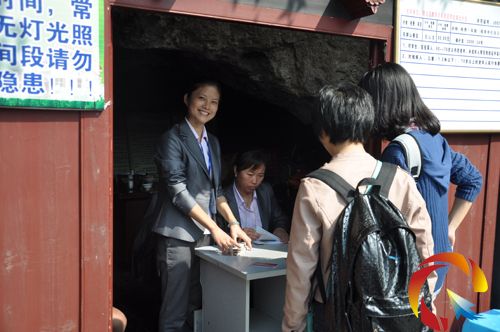 鎮遠順城街老大橋頭接石屏山入口前的路口,是歷史街區連接青龍洞景區的必經之地,也是城區到鐵溪景區的發車點。為迎接國慶旅游高峰,這里專門設立了一個文明執勤點。10月1日以來,來自縣文明辦、舞陽鎮、縣文廣局、縣文物局的執勤人員佩帶袖章,每天早上7:00時至晚上23:00時,三班輪流提供旅游咨詢服務,每天接受詢問2000多人次,他們對車輛進行疏導,組織去鐵溪景區的游客排隊候車,引導觀光車司機文明駕駛。盡管已至客流高峰期,但過往車輛和去鐵溪景區的客運秩序井然,游客們有秩序地排隊、上車。觀光游覽車駕駛員申家祿這兩天連續把游客遺忘在車上的手機、背包歸還給失主,讓游客感受到了鎮遠人的純樸善良。石屏山景區步道石階陡峭,晚上6點過后停止開放,執勤人員為了游客安全,守在售票處門口直到深夜,耐心勸阻游客不要上山拍照,以防意外,得到了游客們的理解和支持。