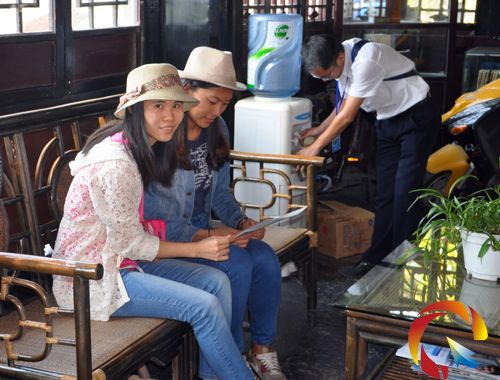 在新大橋頭歷史街區入口處的“微笑小屋”旅游咨詢服務點,來自廣東惠州的兩名女大學生,坐正在小屋里面的竹椅上小憩,她倆對筆者說,“我們來到鎮遠后,感覺這里風光秀麗,人也很熱情,是個不錯的休閑古城”。據了解,“微笑小屋”不僅可以讓游客免費休息停靠,還為游客提供了義務咨詢、景區宣傳資料、飲用茶水、雨傘等人性化服務。