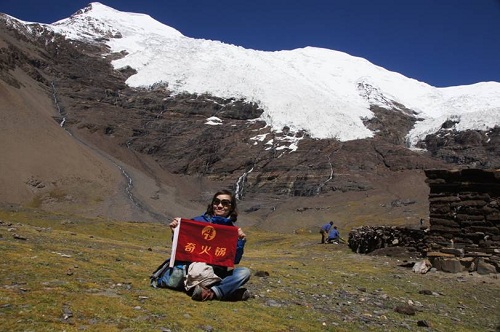隨性的謝莉還把奇火鍋的旗幟插上了珠峰。