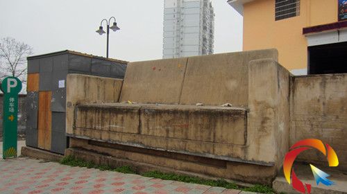 記者趕到文化南路坡頂時(shí),郭先生正笑瞇瞇的和一邊的路人比劃著眼前的建筑,整體看上去,果然就是一張家庭雙人沙發(fā)的造型,只是因?yàn)槭撬嗨T,看上去沒有那么溫馨。