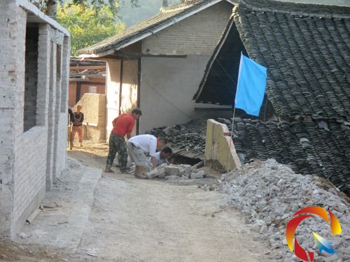 萬潮鎮萬潮村巖莊組村民們正在平整路面