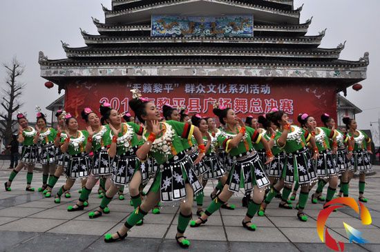本網訊 12月27日,黎平縣舉辦“天籟黎平”侗族廣場舞展演活動,來自各鄉鎮、社區1000余名侗族群眾在縣城文化休閑廣場展示自編的帶有侗族元素的廣場舞,為市民們獻上了一場獨具侗族特色的廣場文化盛宴。(楊代富)