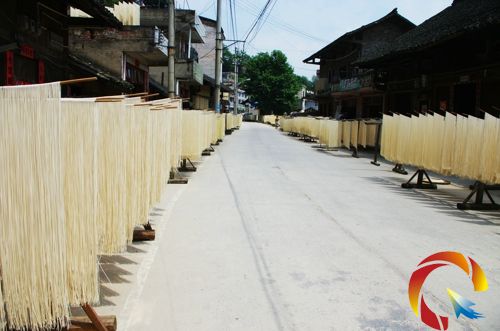 “我們家生產的面條成了下司鎮旅游產品的‘搶手貨’,這些天來盡管每天加工300來斤面條,總是一搶而空。”一家加工店老板樂呵呵的說。(彭德華)