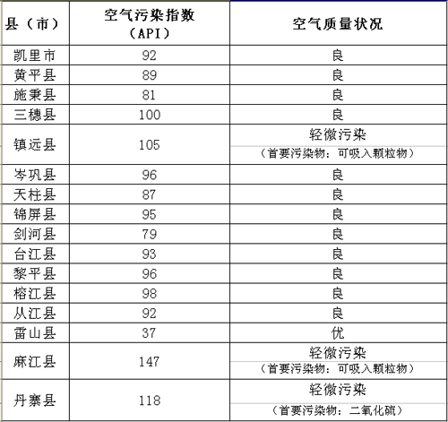 2014年1月1日黔東南州各縣(市)環(huán)境空氣質(zhì)量日?qǐng)?bào)