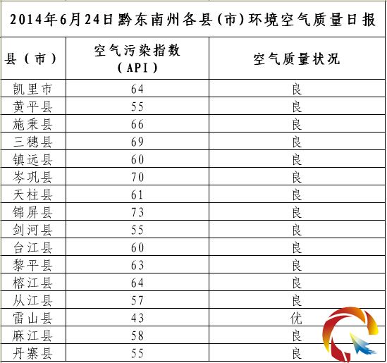 2014年6月24日黔東南州各縣(市)環境空氣質量日報