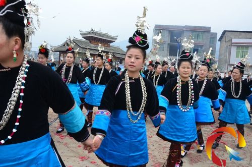 身著節(jié)日盛裝的侗族婦女在跳哆耶舞