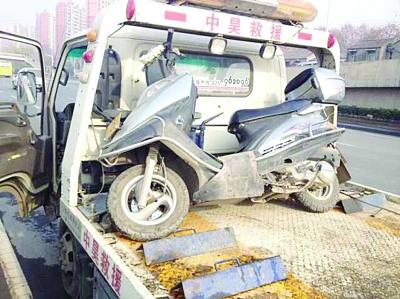 事發(fā)現(xiàn)場位于南京市雨花臺區(qū)鳳臺南路高架和河西大街交會口附近,記者來到現(xiàn)場時,交警孩子勘察現(xiàn)場。記者看見,路邊地上還有一攤血跡,事故中的一方是一輛浙A牌照的藍(lán)色大型貨車,后面車廂呈封閉型,停在一處高架匝道的旁邊。事故中的另一方是一輛淺灰色摩托車,這輛車已經(jīng)嚴(yán)重受損,被抬上救援車輛隨后被拖走。據(jù)了解,這輛大貨車事發(fā)時是從繞城高速下來往城區(qū)方向通行,而摩托車駕駛員是一名男子,車上還有兩個小孩。有目擊者稱,這輛大貨車行進(jìn)時將一旁行駛的摩托車帶倒,車上一名大人和兩名孩子全部飛了出去。隨后,120救護(hù)車來到現(xiàn)場,將傷者送至醫(yī)院搶救。在現(xiàn)場,記者看到,駕駛藍(lán)色貨車的是一名男子,此時,這名男子正在接受交警的詢問。他告訴記者,根本沒看見后面有人。