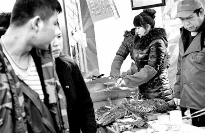 北青報記者昨天下午致電北京永恒雙興水產(chǎn)商行總經(jīng)理尹啟忠,他確認龍?zhí)稄R會的攤主是該公司的經(jīng)銷商,在購買了養(yǎng)殖鱷魚及分割凍肉等鱷魚產(chǎn)品后才到廟會上擺攤。據(jù)他介紹,北京獲得鱷魚經(jīng)營許可證的商家屈指可數(shù),但下游經(jīng)銷商從這些公司進貨后就可以獲得銷售許可手續(xù)。“除了一些展會,還有個別酒樓也銷售鱷魚肉,但近年來賣得越來越少,總體看老百姓也就嘗個鮮,但并不會形成消費常態(tài),因此市場也不大。”