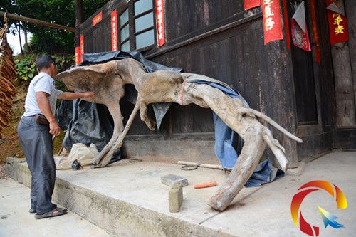 本網訊 (李安生 記者 周燕玲) 9月13日,筆者在鎮遠縣江古鎮山背村偶然發現一木雕“外星人”。當地村民表示沒見過如此美妙的根雕原材料,包括前來的旅客也大多表示驚奇。不過,收藏此寶貝的村民“韓書記”黃佐泉,暫不愿透露前來的買家的尋價情況。
