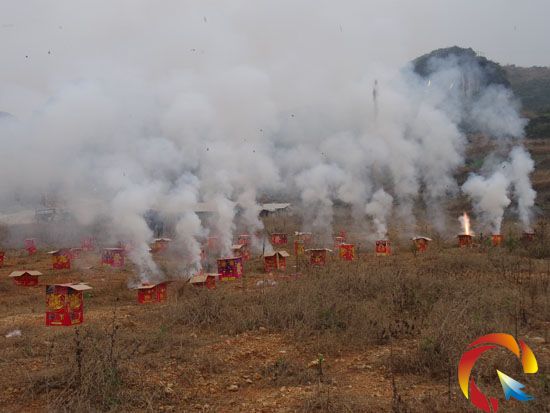 當天下午,在貫洞鎮友團村一片開闊的空地上,隨著“噼里啪啦”、“砰砰砰”聲聲巨響和滾滾濃煙,45盒禮花,28卷鞭炮,2750顆爆竹,5件火柴炮等非法煙花爆竹在火光和爆炸聲中化為灰燼。