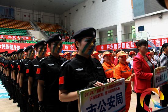 本網訊 為積極響應“舞動凱里城 展巾幗風采 共筑中國夢”---2015“愛康杯”凱里地區百萬婦女民族健身操、健身舞展示大賽。凱里公安精心挑選13名警花和6名帥警參加此次大賽,通過三天激烈角逐,凱里公安代表隊摘取桂冠。