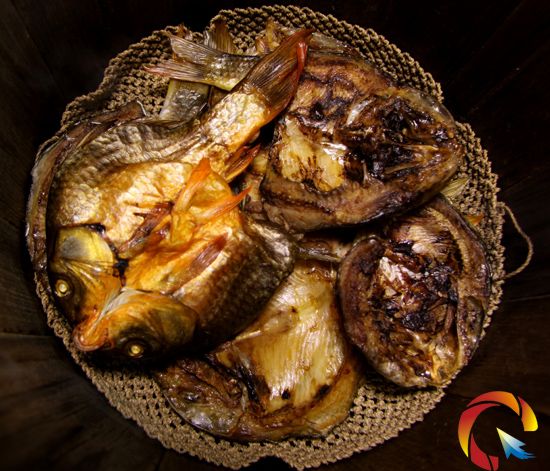 用微弱的木炭烤魚(yú)