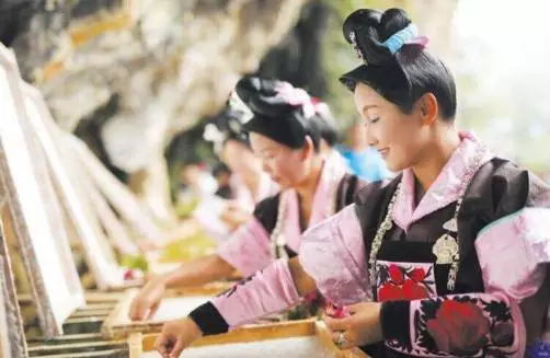 石橋村位于丹寨縣南皋鄉,從縣城驅車半小時可前往。丹寨石橋的古法造紙是國家級非遺。在天然形成的大山洞下,你可以看到最古樸的造紙作坊。