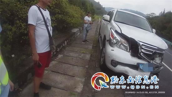 據(jù)當(dāng)事人介紹,當(dāng)天下午,車(chē)輛從貴陽(yáng)出發(fā),前往廣西方向,進(jìn)入從江縣洛香鎮(zhèn)境內(nèi)時(shí),突然下起了大雨,當(dāng)時(shí)車(chē)速在110公里左右,因下雨視線不良,當(dāng)事人沒(méi)注意觀察路面情況,行徑事發(fā)路段時(shí)沒(méi)看清路面有積水,車(chē)輛高速通過(guò)積水路面時(shí),車(chē)輛突然失控,發(fā)生漂移,猛烈撞擊道路中央波形防護(hù)欄肇事。