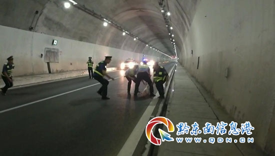 接警后,民警立即通知高速路政、應(yīng)急部門一同前往支援,當(dāng)趕到現(xiàn)場時,民警發(fā)現(xiàn)一頭約30公斤小豬橫竄在隧道內(nèi),看到車輛經(jīng)過,小豬似受到了驚嚇,更是尖叫而瘋狂的在隧道內(nèi)跑來跑去,四處亂竄,過往車輛紛紛緊急剎車避讓,險些造成多車追尾交通事故,安全隱患巨大。