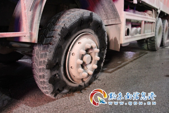 2018年6月23日晚上20時,黎平縣公安局交通警察大隊在縣城區檢查酒駕時,一輛行駛過來的前四后八的大貨車引起了民警的注意,車輛右側冒著煙,民警及時將車輛攔停了下來,只見車輛右后前輪冒出了濃煙,輪胎已經癟氣,民警在現場都感覺到車輪濃煙熱氣逼人。難道是駕駛員不知道車輛輪胎已出了問題,還繼續駕駛?當民警進一步詢問時才得知,原來駕駛員知道車輛爆了胎,抱著僥幸心理,想開到修理廠去更換輪胎,沒想到還沒到修理廠就被民警攔停了。