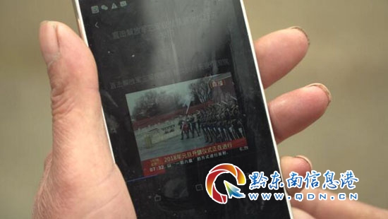 本網訊 2018年的第一天上午,記者在望豐鄉烏響村看到,一老人正坐在門外通過手機觀看2018年元旦解放軍首次執行天安門升旗儀式。通過采訪得知,老人名叫李子權,年輕時也當過兵,是中國人民解放軍第14集團軍40師118團8連的老兵,由于家里沒有安裝無線網絡,便跑到門口蹭WiFi觀看天安門升旗儀式直播。