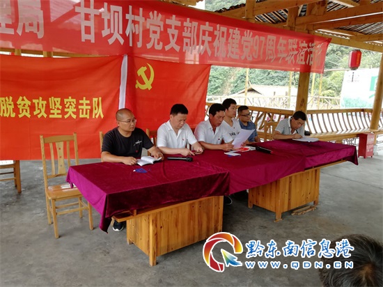 當日上午9時,凱里市市場監督管理局的領導和凱里爐山鎮甘壩村黨支部早早就來到了南山河等待活動的開始,此次的活動主要目的就是:認真總結新時期以來甘壩村脫貧攻堅的工作經驗、所取得的成績和黨建工作上的黨員先進事跡,進一步動員全村的共產黨員和積極先進分子要振奮精神、開拓創新、扎實工作,努力把甘壩村的脫貧攻堅和黨建工作提高到新的水平,為甘壩村全面建設小康而奮斗。此次參加的會議有凱里市市場監督管理局的領導徐國雄書記和人教科工作人員,甘壩村的全體黨員和入黨積極分子,來甘壩村投資創業的各個老板都參與活動。