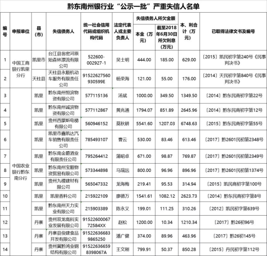 附:黔東南州銀行業“公示一批”嚴重失信人名單