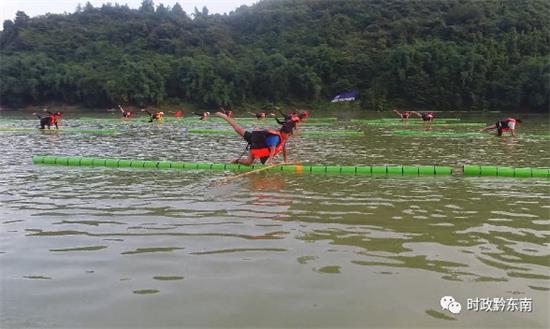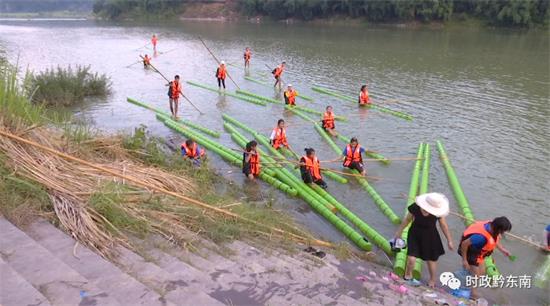 在獨(dú)竹漂訓(xùn)練場,這里的學(xué)生參加獨(dú)竹漂訓(xùn)練已經(jīng)一個(gè)多月了,大部分學(xué)生都是零基礎(chǔ),由于天氣熱,水勢不穩(wěn)定,加上他們練習(xí)的是技巧獨(dú)竹漂,學(xué)習(xí)比較困難。