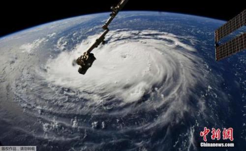 當(dāng)?shù)貢r間2018年9月10日,從國際空間站拍攝的颶風(fēng)“佛羅倫薩”畫面。