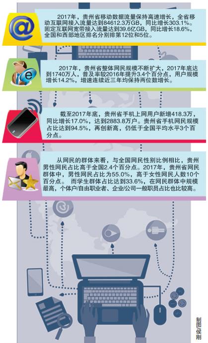 《報告》顯示,目前貴州網民規模達到了1740萬人,人均每月上網次數達到332次。